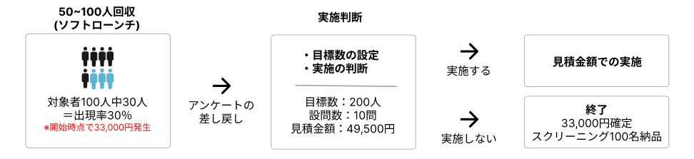 ※ソフトローンチの結果アンケート全体の出現率5%未満の場合は、アンケートが自動的に終了し、ソフトローンチの費用がかかります。