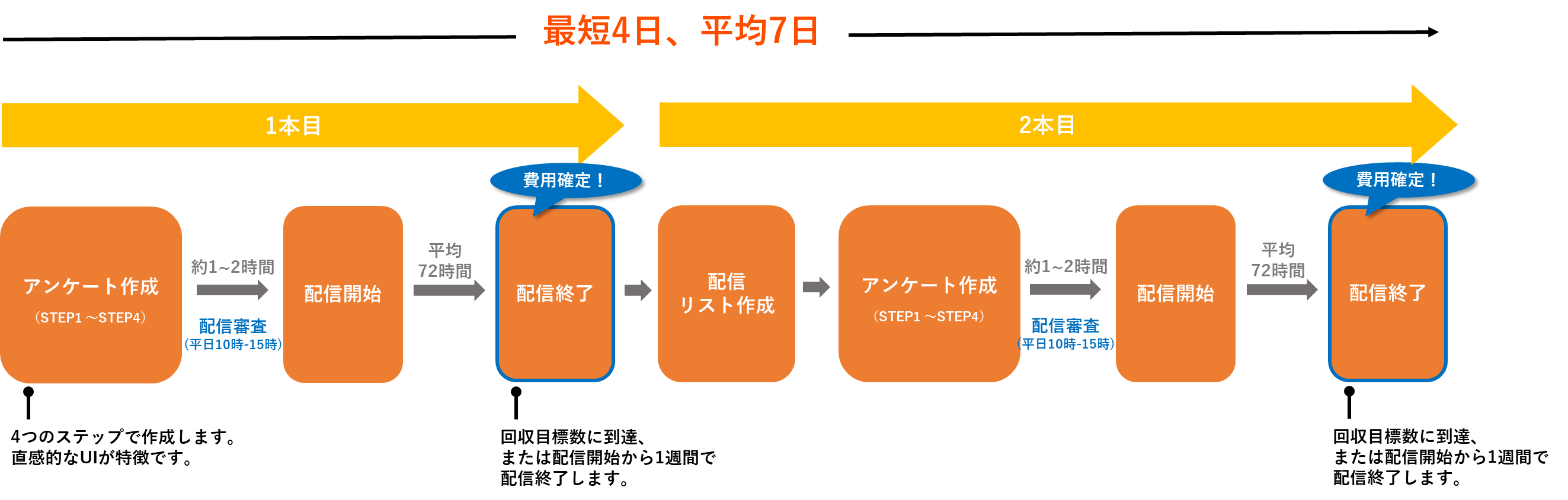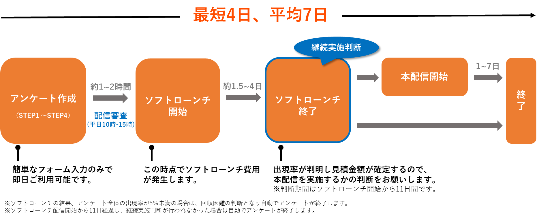 いずれも最短4日、平均7日間となります。