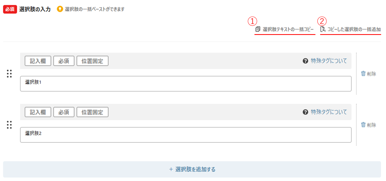 ❷「コピーした選択肢の一括追加」ボタンをクリック