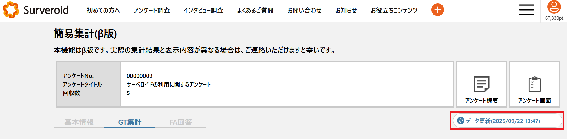 最新の集計データが確認できるようになります。