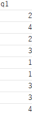ロウデータ上では、q1列に、回答者が選択した選択肢を示す数値データが入ります。