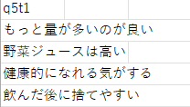 フリー(小)(SF) | 設問番号 + t + 選択肢番号 | 文字列 | q1t1 |