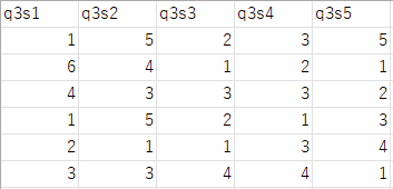 マトリクス両側(MTB) | 設問番号 + s + 行番号 | 数値 | q1s1 |